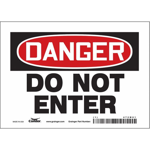 Safety Sign, 5 in Height, 7 in Width, Vinyl, Horizontal Rectangle, English, 472M81SKU G5060017Categories SafetyDescription Safety Sign, Horizontal Rectangle, Number of Printed Sides 1, English, Sign Format Traditional OSHA, Sign Legend Do Not Enter, Sign Legend Background Color White, Sign Legend Style TextgraingerSKU: 472M81, mscSKU: , zoro_no: G5060017, mongo_id: 65bbe7463aaddbd5a90853c0