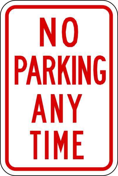 No Parking Any Time Sign, 18X12", Aluminum, 2236SKU G0909655Categories SafetyDescription No Parking Sign, Height 18 in, Width 12 in, Sign Material Aluminum, Printed Language English, Sign Shape Rectangle$21.99 / eachWeb price -