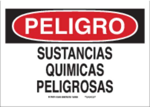 Danger Sign, 14X10", R and BK/WHT, TextSKU G7435132Categories SafetyDescription Danger Sign, Sign Subject Matter Chemical, Gas or Hazardous Materials, Height 14 in, Width 10 in, Sign Material Fiberglass, Sign Mounting Style With Mounting Holes, Header Peligro, Legend Sustancias Quimicas Peligrosas, Printed Language Spanish, Sign Shape Rectangle$43.74 / eachWeb price -