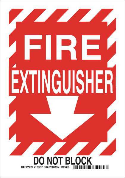 Fire Ext Sign, 10X7", Black and Wt/RedSKU G8472672Categories SafetyDescription Fire Extinguisher Sign, Sign Subject Matter Fire Equipment, Height 10 in, Width 7 in, Sign Material Plastic, Sign Mounting Style With Mounting Holes, Header No Header, Legend Fire Extinguisher Do Not Block, Printed Language English, Sign Shape Rectangle$11.74 / eachWeb price -