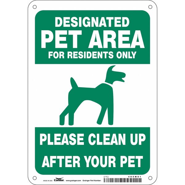 Safety Sign, 10 in Height, 7 in Width, Aluminum, Horizontal Rectangle, English, 485M01SKU G6310147Categories SafetyDescription Safety Sign, Horizontal Rectangle, Number of Printed Sides 1, English, Sign Legend Designated Pet Area For Residents Only Please Clean Up After Your Pet, Sign Legend Background Color Green, White, Sign Legend Style Symbol and TextgraingerSKU: 485M01, mscSKU: , zoro_no: G6310147, mongo_id: 65bbe7463aaddbd5a908530b