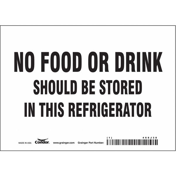 Safety Sign, 5 in Height, 7 in Width, Vinyl, Horizontal Rectangle, English, 468J38SKU G5573528Categories SafetyDescription Safety Sign, Horizontal Rectangle, Number of Printed Sides 1, English, Sign Legend No Food Or Drink Should Be Stored In This Refrigerator, Sign Legend Background Color White, Sign Legend Style TextgraingerSKU: 468J38, mscSKU: , zoro_no: G5573528, mongo_id: 65bbe7463aaddbd5a9085436