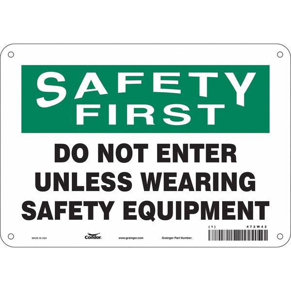 SKU G5834180Categories SafetyDescription Safety Sign, Vertical Rectangle, Number of Printed Sides 1, English, Sign Format Traditional OSHA, Sign Legend Do Not Enter Unless Wearing Safety Equipment, Sign Legend Background Color White, Sign Legend Style TextgraingerSKU: 472W42, mscSKU: , zoro_no: G5834180, mongo_id: 65bbe7463aaddbd5a908540b