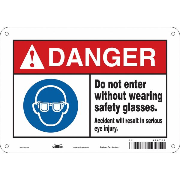 SKU G5180931Categories SafetyDescription Safety Sign, Vertical Rectangle, Number of Printed Sides 1, English, Sign Format ANSI/OSHA Format, Sign Legend Do Not Enter Without Wearing Safety Glasses. Accident Will Result In Serious Eye Injury., Sign Legend Background Color White, Sign Legend Style Symbol and TextgraingerSKU: 466Y22, mscSKU: , zoro_no: G5180931, mongo_id: 65bbe7463aaddbd5a9085398