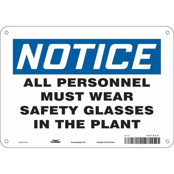 Safety Sign, 7 in Height, 10 in Width, Aluminum, Vertical Rectangle, English, 467A35SKU G5281652Categories SafetyDescription Safety Sign, Vertical Rectangle, Number of Printed Sides 1, English, Sign Format Traditional OSHA, Sign Legend All Personnel Must Wear Safety Glasses In The Plant, Sign Legend Background Color White, Sign Legend Style TextgraingerSKU: 467A35, mscSKU: , zoro_no: G5281652, mongo_id: 65bbe7463aaddbd5a9085350