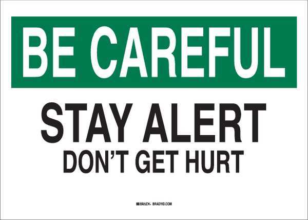 SKU G102689162Categories SafetyDescription Safety Slogan Sign, Sign Subject Matter Safety Incentive and Motivational, Height 7 In., Width 10 In., Sign Material Aluminum, Sign Mounting Style With Mounting Holes, Header Be Careful, Legend Stay Alert Don't Get Hurt, Printed Language English, Sign Shape Rectangle$15.69 / eachWeb price
