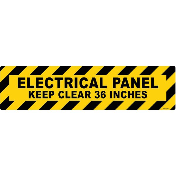 Floor Sign, 6 in H, 24 in W, Vinyl, Horizontal Rectangle, English, FS-624-902SKU G6535002Categories SafetyDescription Floor Sign, Horizontal Rectangle, Number of Printed Sides 1, English, Sign Format Other Format, Sign Legend Electrical Panel Keep Clear 36 Inches, Sign Legend Background Color Yellow, Sign Legend Style Symbol and Text, Sign Legend Character Height 1 1/4 ingraingerSKU: 484P45, mscSKU: , zoro_no: G6535002, mongo_id: 65bbe7379a749db822725d62