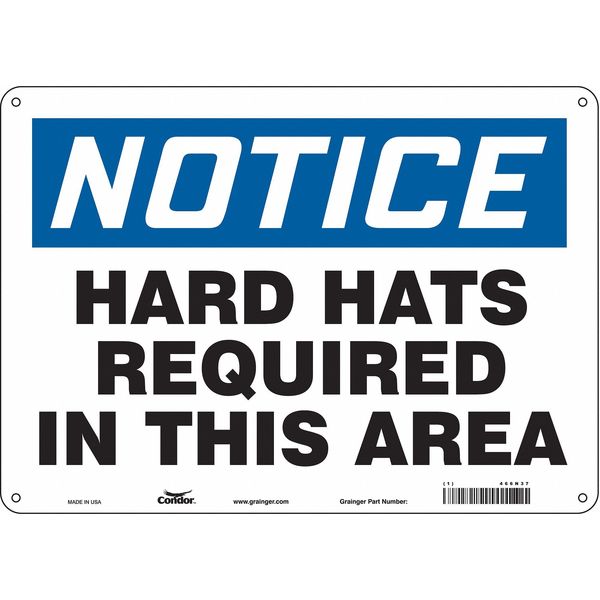 Safety Sign, 10 in Height, 14 in Width, Aluminum, Horizontal Rectangle, English, 466N37SKU G5101859Categories SafetyDescription Safety Sign, Horizontal Rectangle, Number of Printed Sides 1, English, Sign Format Traditional OSHA, Sign Legend Hard Hats Required In This Area, Sign Legend Background Color White, Sign Legend Style TextgraingerSKU: 466N37, mscSKU: , zoro_no: G5101859, mongo_id: 65bbe7379a749db822725b0e