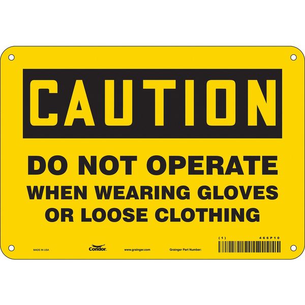 Safety Sign, 7 in Height, 10 in Width, Aluminum, Vertical Rectangle, English, 466P10SKU G5612859Categories SafetyDescription Safety Sign, Vertical Rectangle, Number of Printed Sides 1, English, Sign Format Traditional OSHA, Sign Legend Do Not Operate When Wearing Gloves Or Loose Clothing, Sign Legend Background Color Yellow, Sign Legend Style TextgraingerSKU: 466P10, mscSKU: , zoro_no: G5612859, mongo_id: 65bbe7379a749db822725974