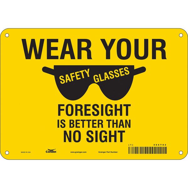Safety Sign, 7 in Height, 10 in Width, Aluminum, Vertical Rectangle, English, 466T82SKU G5612877Categories SafetyDescription Safety Sign, Vertical Rectangle, Number of Printed Sides 1, English, Sign Format Other Format, Sign Legend Wear Your Safety Glasses Foresight Is Better Than No Sight, Sign Legend Background Color Yellow, Sign Legend Style Symbol and TextgraingerSKU: 466T82, mscSKU: , zoro_no: G5612877, mongo_id: 65bbe7379a749db822725969