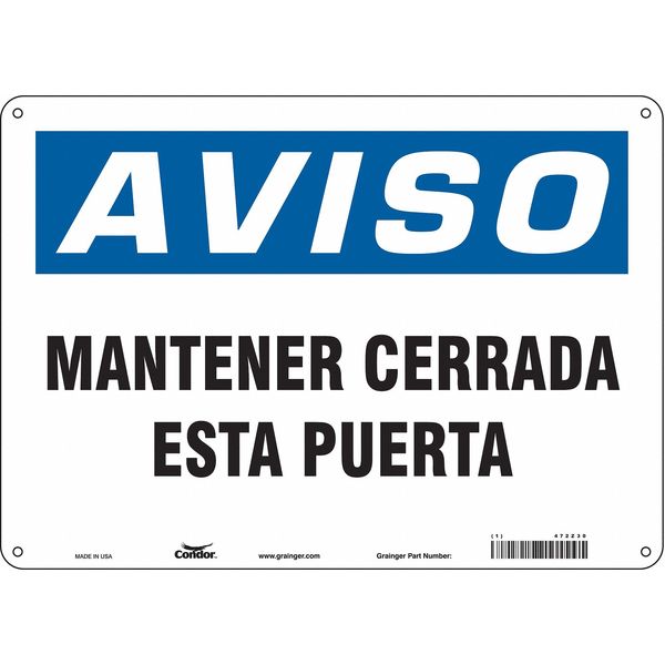 Safety Sign, 14" W, 10" H, 0.032" ThicknessSKU G5575022Categories SafetyDescription Safety Sign, Horizontal Rectangle, Number of Printed Sides 1, Spanish, Sign Format Traditional OSHA, Sign Legend Mantener Cerrada Esta Puerta, Sign Legend Background Color White, Sign Legend Style TextgraingerSKU: 472Z30, mscSKU: , zoro_no: G5575022, mongo_id: 65bbe7379a749db822725992