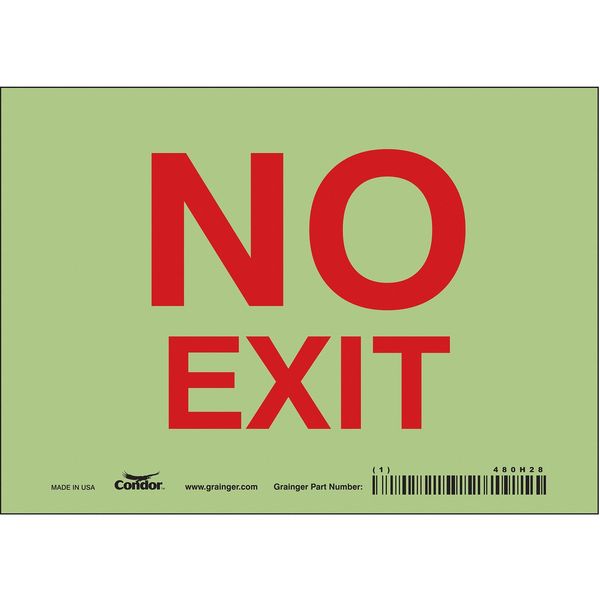 Safety Sign, 5 in x 7 in, Glow VinylSKU G5922697Categories SafetyDescription Safety Sign, Horizontal Rectangle, Number of Printed Sides 1, English, Sign Legend No Exit, Sign Legend Background Color White, Sign Legend Style TextgraingerSKU: 480H28, mscSKU: , zoro_no: G5922697, mongo_id: 65bbe7379a749db822725960