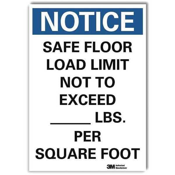 SKU G2758001Categories SafetyDescription Notice Sign, Horizontal Rectangle, Number of Printed Sides 1, English, Sign Format Traditional OSHA, Sign Legend Safe Floor Load Limit Not To Exceed ___ Lbs.Per Square Foot, Sign Legend Background Color White, Sign Legend Style TextgraingerSKU: 34JW26, mscSKU: , zoro_no: G2758001, mongo_id: 65bbe7379a749db82272560e