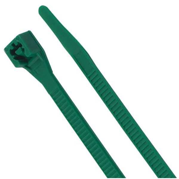 Cable Ties, Double Lock Design, 8 in L, 11/64 in W, 75 lb, Green, Nylon 6/6, 100 PK