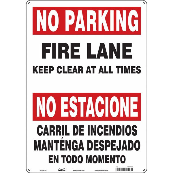 Fire Lane, Zone & Equipment No Parking Sign, 20 in Height, 14 in Width, Aluminum, English, Spanish
