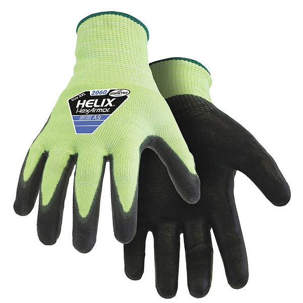 Hi-Vis Cut Resistant Coated Gloves, A9 Cut Level, Polyurethane, XL, 1 PR