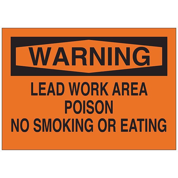 SKU G5627474Categories SafetyDescription Chemical Sign, Lead Work Area Poison No Smoking Or Eating, Fiberglass, Height 7 in, Width 10 in, Header Warning, Legend Style Text, Language English, Mounting Style Surface, Thickness 0.1 in, Sign Shape Rectangle, Operating Temp. Range -40 Degrees to 194 Degrees F, Retroreflective Grade Not RetroreflectivegraingerSKU: 41G369, mscSKU: , zoro_no: G5627474, mongo_id: 65bbea6522d7a989a99b1089