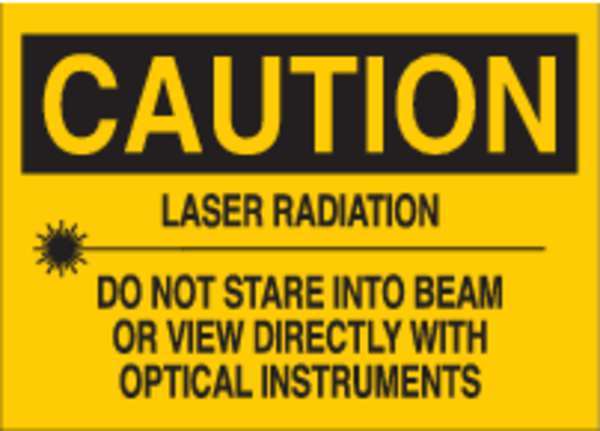 Caution Laser Sign, 7 in H, 10 in W, Polyester, Rectangle, 84987