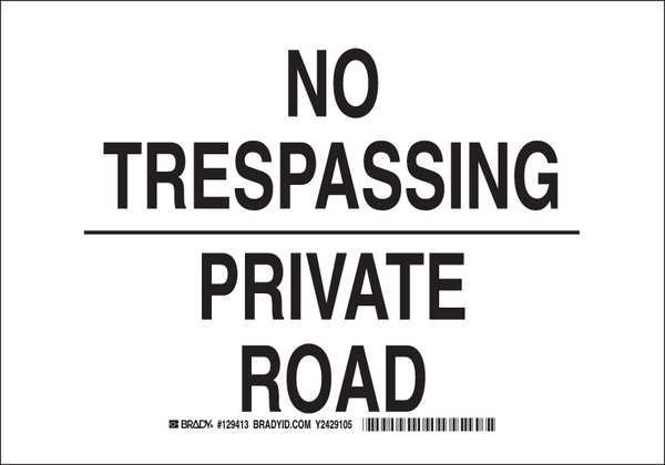 SKU G7411542Categories SafetyDescription Security Sign, Sign Subject Matter Trespassing and Property, Height 10 in, Width 14 in, Sign Material Plastic, Sign Mounting Style With Mounting Holes, Header No Header, Legend No Trespassing Private Road, Printed Language English, Sign Shape Rectangle$17.49 / eachWeb priceSecurity Sign, 10X14", Black/White, Sign Legend Color: BlackSKU G7411542Categories SafetyDescription Security Sign, Sign Subject Matter Trespassing and Property, Height 10 in, Width 14 in, Sign Material Plastic, Sign Mounting Style With Mounting Holes, Header No Header, Legend No Trespassing Private Road, Printed Language English, Sign Shape Rectangle$17.49 / eachWeb price -