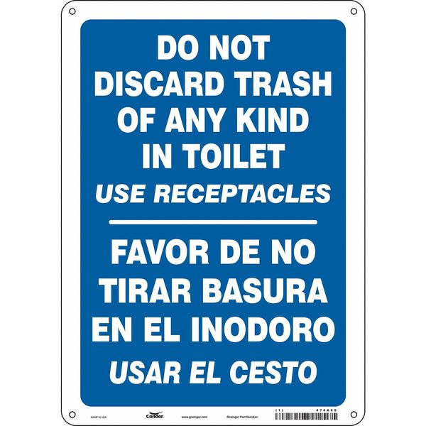 SKU G5558152Categories SafetyDescription Restroom Sign, Vertical Rectangle, Number of Printed Sides 1, English, Spanish, Sign Format Other Format, Sign Legend Do Not Discard Trash Of Any Kind In Toilet Use Receptacles/Favor De No Tirar Basura En El Inodoro. Usar El Cesto., Sign Legend Background Color Blue, White, Sign Legend Style TextgraingerSKU: 474A60, mscSKU: , zoro_no: G5558152, mongo_id: 65bbe83422d7a989a98dfa3f