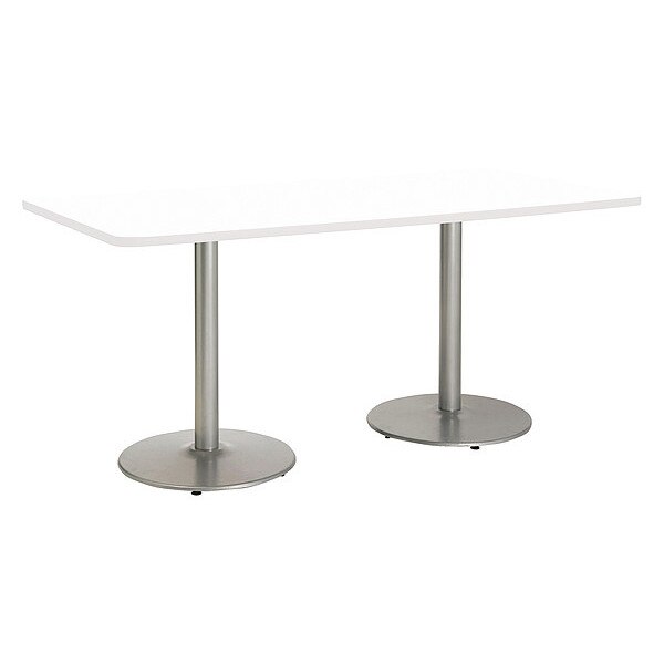 Rectangle Ped Table, Designer Wh/Silver, 42"x96"x29", 96" W, 42" L, 29" (Cafe Height) H, HPL Top