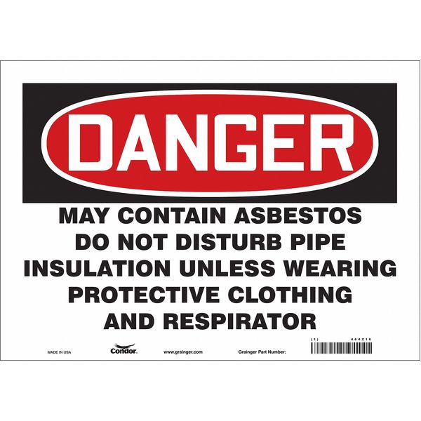 SKU G5084359Categories SafetyDescription Safety Sign, Horizontal Rectangle, Number of Printed Sides 1, English, Sign Format Traditional OSHA, Sign Legend May Contain Asbestos Do Not Disturb Pipe Insulation Unless Wearing Protective Clothing And Respirator, Sign Legend Background Color White, Sign Legend Style TextgraingerSKU: 464Z16, mscSKU: , zoro_no: G5084359, mongo_id: 65bbee2b526e052139af3048