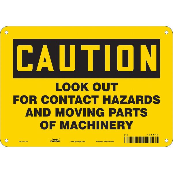 Safety Sign, 7 in Height, 10 in Width, Aluminum, Vertical Rectangle, English, 475P43SKU G5611090Categories SafetyDescription Safety Sign, Vertical Rectangle, Number of Printed Sides 1, English, Sign Format Traditional OSHA, Sign Legend Look Out For Contact Hazards And Moving Parts Of Machinery, Sign Legend Background Color Yellow, Sign Legend Style TextgraingerSKU: 475P43, mscSKU: , zoro_no: G5611090, mongo_id: 65bbee2b526e052139af30e5