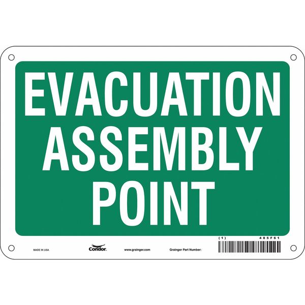 Safety Sign, 10" Wx7" H, 0.032" ThickSKU G6299330Categories SafetyDescription Safety Sign, Vertical Rectangle, Number of Printed Sides 1, English, Sign Legend Evacuation Assembly Point, Sign Legend Background Color Green, Sign Legend Style TextgraingerSKU: 485F61, mscSKU: , zoro_no: G6299330, mongo_id: 65bbee2b526e052139af3029