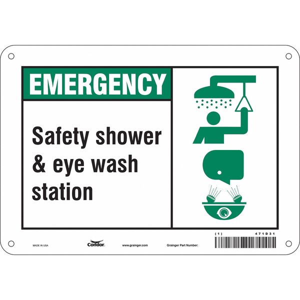 Safety Sign, 7 in Height, 10 in Width, Polyethylene, Vertical Rectangle, English, 471D31SKU G5058300Categories SafetyDescription Safety Sign, Vertical Rectangle, Number of Printed Sides 1, English, Sign Legend Safety Shower & Eye Wash Station, Sign Legend Background Color Green, White, Sign Legend Style Symbol and TextgraingerSKU: 471D31, mscSKU: , zoro_no: G5058300, mongo_id: 65bbee2b526e052139af2f64