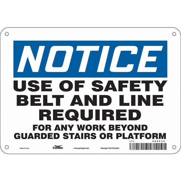 Safety Sign, 7 in Height, 10 in Width, Aluminum, Vertical Rectangle, English, 486F32SKU G6242700Categories SafetyDescription Safety Sign, Vertical Rectangle, Number of Printed Sides 1, English, Sign Format Traditional OSHA, Sign Legend Use Of Safety Belt And Line Required For Any Work Beyond Guarded Stairs Or Platform, Sign Legend Background Color White, Sign Legend Style TextgraingerSKU: 486F32, mscSKU: , zoro_no: G6242700, mongo_id: 65bbee2b526e052139af2f0b