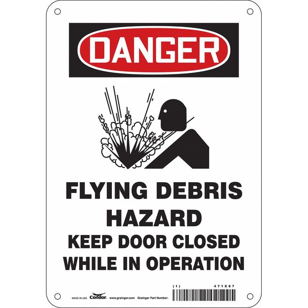 Safety Sign, 10 in Height, 7 in Width, Aluminum, Horizontal Rectangle, English, 471X87SKU G5214662Categories SafetyDescription Safety Sign, Horizontal Rectangle, Number of Printed Sides 1, English, Sign Format Traditional OSHA, Sign Legend Flying Debris Hazard Keep Door Closed While In Operation, Sign Legend Background Color White, Sign Legend Style Symbol and TextgraingerSKU: 471X87, mscSKU: , zoro_no: G5214662, mongo_id: 65bbee2b526e052139af2ec0