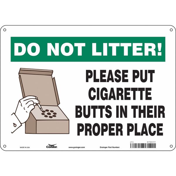 Safety Sign, 10" H, 14 in W, Horizontal Rectangle, English, 474C17SKU G5094649Categories SafetyDescription Safety Sign, Horizontal Rectangle, Number of Printed Sides 1, English, Sign Format Other Format, Sign Legend Don't Litter! Please Put Cigarette Butts In Their Proper Place, Sign Legend Background Color Green, White, Sign Legend Style Symbol and TextgraingerSKU: 474C17, mscSKU: , zoro_no: G5094649, mongo_id: 65bbee2b526e052139af2ef4