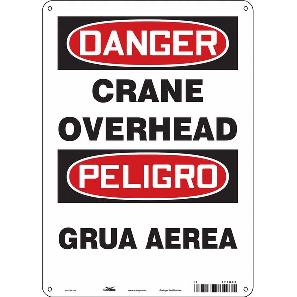 SKU G5856039Categories SafetyDescription Safety Sign, Vertical Rectangle, Number of Printed Sides 1, English, Spanish, Sign Format Traditional OSHA, Sign Legend Crane Overhead/Grua Aerea, Sign Legend Background Color White, Sign Legend Style TextgraingerSKU: 476K62, mscSKU: , zoro_no: G5856039, mongo_id: 65bbee2b526e052139af2eb0