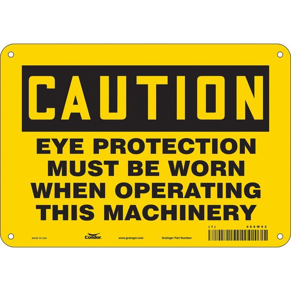 Safety Sign, 7 in Height, 10 in Width, Aluminum, Vertical Rectangle, English, 466W92SKU G5272220Categories SafetyDescription Safety Sign, Vertical Rectangle, Number of Printed Sides 1, English, Sign Format Traditional OSHA, Sign Legend Eye Protection Must Be Worn When Operating This Machinery, Sign Legend Background Color Yellow, Sign Legend Style TextgraingerSKU: 466W92, mscSKU: , zoro_no: G5272220, mongo_id: 65bbee2b526e052139af3112