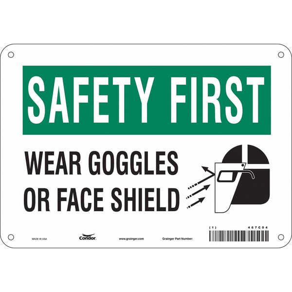 Safety Sign, 7 in Height, 10 in Width, Aluminum, Vertical Rectangle, English, 467C04SKU G5860500Categories SafetyDescription Safety Sign, Vertical Rectangle, Number of Printed Sides 1, English, Sign Format Traditional OSHA, Sign Legend Wear Goggles Or Face Shield, Sign Legend Background Color White, Sign Legend Style Symbol and TextgraingerSKU: 467C04, mscSKU: , zoro_no: G5860500, mongo_id: 65bbee2b526e052139af30e9
