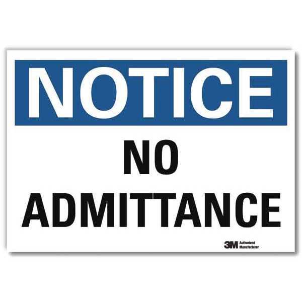 Notice Sign, 7 in H, 10 in W, Reflective Sheeting, Vertical Rectangle, English, U5-1331-RD_10X7SKU G2760515Categories SafetyDescription Notice Sign, Vertical Rectangle, Number of Printed Sides 1, English, Sign Format Traditional OSHA, Sign Legend No Admittance, Sign Legend Background Color White, Sign Legend Style TextgraingerSKU: 34JR50, mscSKU: , zoro_no: G2760515, mongo_id: 65bbee2b526e052139af2c0c