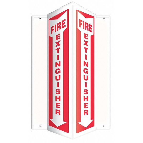 Fire Extinguisher Sign, 12 in Height, 7 1/2 in Width, Plastic, V-Shaped, English