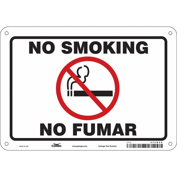 Safety Sign, 7" H, 10" W, Vertical Rectangle, English, Spanish, 474D35SKU G5094807Categories SafetyDescription Safety Sign, Vertical Rectangle, Number of Printed Sides 1, English, Spanish, Sign Format Other Format, Sign Legend No Smoking/No Fumar, Sign Legend Background Color White, Sign Legend Style Symbol and TextgraingerSKU: 474D35, mscSKU: , zoro_no: G5094807, mongo_id: 65bbee06526e052139ae4b35