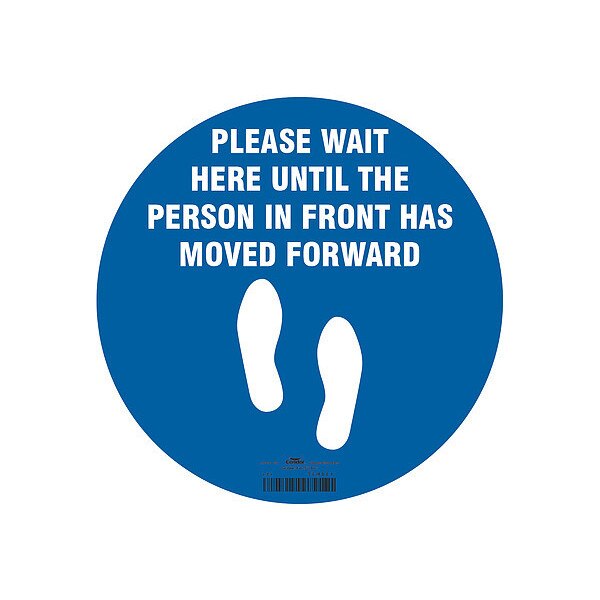 SKU G9518443Categories SafetyDescription Safety Sign, Sign Subject Matter Coronavirus Prevention, Height 12 in, Width 12 in, Sign Material Plastic, Sign Mounting Style Adhesive Surface, Header No Header, Legend Please Wait Here Until The Person In Front Has Moved Forward, Printed Language English, Sign Shape Circle$7.19 / eachWeb price