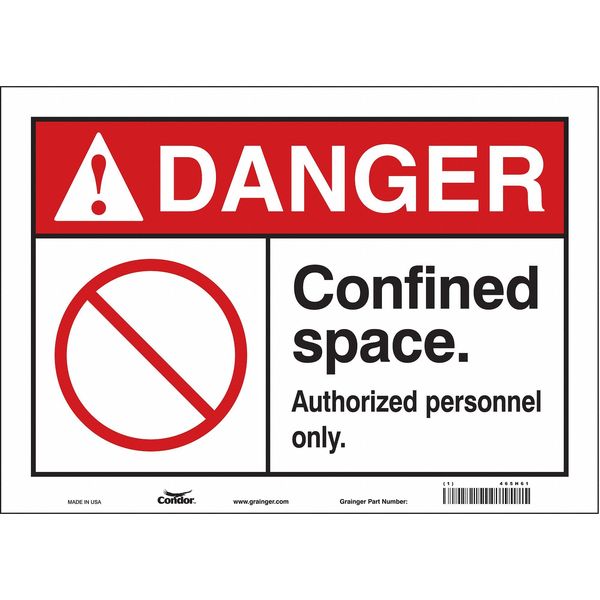 SKU G5084307Categories SafetyDescription Safety Sign, Horizontal Rectangle, Number of Printed Sides 1, English, Sign Format ANSI/OSHA Format, Sign Legend Confined Space. Authorized Personnel Only., Sign Legend Background Color White, Sign Legend Style Symbol and TextgraingerSKU: 465H61, mscSKU: , zoro_no: G5084307, mongo_id: 65bbee06526e052139ae4b45