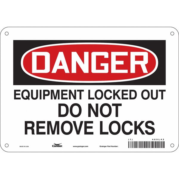 Safety Sign, 7 in Height, 10 in Width, Aluminum, Vertical Rectangle, English, 469L42SKU G5619831Categories SafetyDescription Safety Sign, Vertical Rectangle, Number of Printed Sides 1, English, Sign Format Traditional OSHA, Sign Legend Equipment Locked Out Do Not Remove Locks, Sign Legend Background Color White, Sign Legend Style TextgraingerSKU: 469L42, mscSKU: , zoro_no: G5619831, mongo_id: 65bbee06526e052139ae4b5a