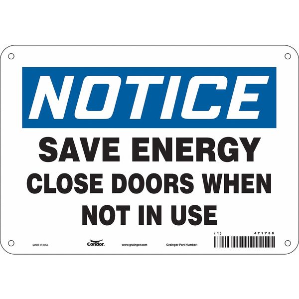 SKU G5260899Categories SafetyDescription Safety Sign, Vertical Rectangle, Number of Printed Sides 1, English, Sign Format Traditional OSHA, Sign Legend Save Energy Close Doors When Not In Use, Sign Legend Background Color White, Sign Legend Style TextgraingerSKU: 471Y88, mscSKU: , zoro_no: G5260899, mongo_id: 65bbee06526e052139ae4a5b