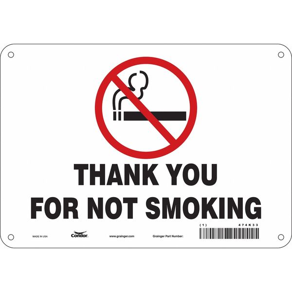 Safety Sign, 7" H, 10" W, Vertical Rectangle, English, 474K33SKU G5548921Categories SafetyDescription Safety Sign, Vertical Rectangle, Number of Printed Sides 1, English, Sign Format Other Format, Sign Legend Thank You For Not Smoking, Sign Legend Background Color White, Sign Legend Style Symbol and TextgraingerSKU: 474K33, mscSKU: , zoro_no: G5548921, mongo_id: 65bbee06526e052139ae4964