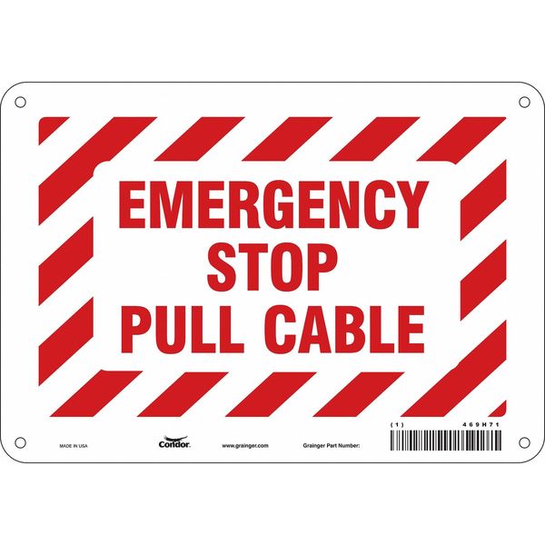 SAFETY SIGN FIRE AND EMERGENCY, 7 in Height, 10 in Width, Aluminum, Vertical Rectangle, EnglishSKU G5604781Categories SafetyDescription SAFETY SIGN FIRE AND EMERGENCY, Vertical Rectangle, Number of Printed Sides 1, English, Sign Legend Emergency Stop Pull Cable, Sign Legend Background Color Red, White, Sign Legend Style TextgraingerSKU: 469H71, mscSKU: , zoro_no: G5604781, mongo_id: 65bbee06526e052139ae48d3