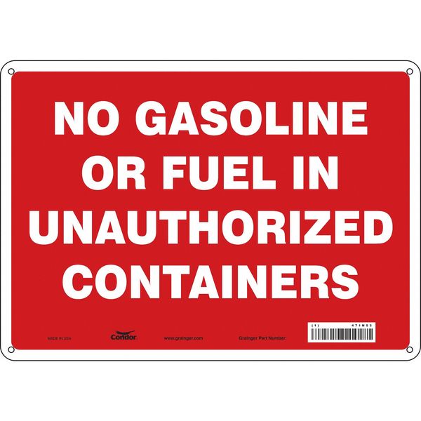 SKU G5620942Categories SafetyDescription Safety Sign, Horizontal Rectangle, Number of Printed Sides 1, English, Sign Format Other Format, Sign Legend No Gasoline Or Fuel In Unauthorized Containers, Sign Legend Background Color Red, Sign Legend Style TextgraingerSKU: 471N53, mscSKU: , zoro_no: G5620942, mongo_id: 65bbee06526e052139ae48b7