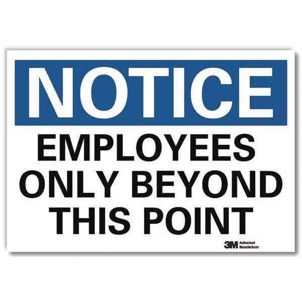 Notice Sign, 5 in H, 7 in W, Reflective Sheeting, Horizontal Rectangle, English, U5-1193-RD_7X5SKU G1814760Categories SafetyDescription Notice Sign, Horizontal Rectangle, Number of Printed Sides 1, English, Sign Format Traditional OSHA, Sign Legend Employees Only Beyond This Point, Sign Legend Background Color White, Sign Legend Style TextgraingerSKU: 34JL88, mscSKU: , zoro_no: G1814760, mongo_id: 65bbee06526e052139ae457a