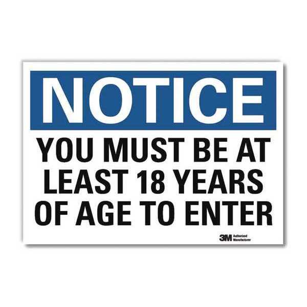 SKU G2755956Categories SafetyDescription Notice Sign, Horizontal Rectangle, Number of Printed Sides 1, English, Sign Format Traditional OSHA, Sign Legend You Must Be At Least 18 Years Of Age To Enter, Sign Legend Background Color White, Sign Legend Style TextgraingerSKU: 34JZ38, mscSKU: , zoro_no: G2755956, mongo_id: 65bbee06526e052139ae45fb