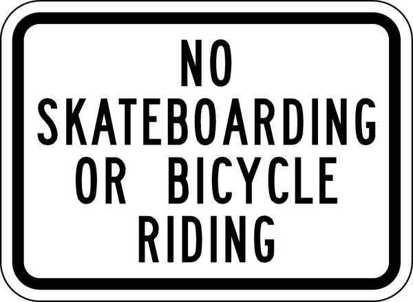 SKU G0213166Categories SafetyDescription Traffic Sign, Horizontal Rectangle, Number of Printed Sides 1, English, Sign Legend No Skateboarding Or Bicycle Riding, Sign Legend Background Color White, Sign Legend Style TextgraingerSKU: 3PMJ5, mscSKU: , zoro_no: G0213166, mongo_id: 65bbee06526e052139ae459f