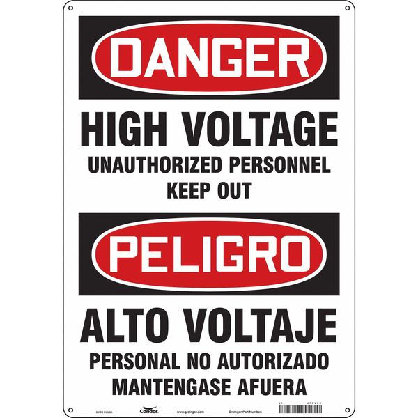 Safety Sign, 14" Wx20" H, 0.032" Thickness, 479V22SKU G5898897Categories SafetyDescription Safety Sign, Vertical Rectangle, Number of Printed Sides 1, English, Spanish, Sign Format Traditional OSHA, Sign Legend High Voltage Unauthorized Personnel Keep Out/Alto Voltaje Personal No Autorizado Mantengase Afuera, Sign Legend Background Color White, Sign Legend Style TextgraingerSKU: 479V22, mscSKU: , zoro_no: G5898897, mongo_id: 65bbea5222d7a989a99a87cd