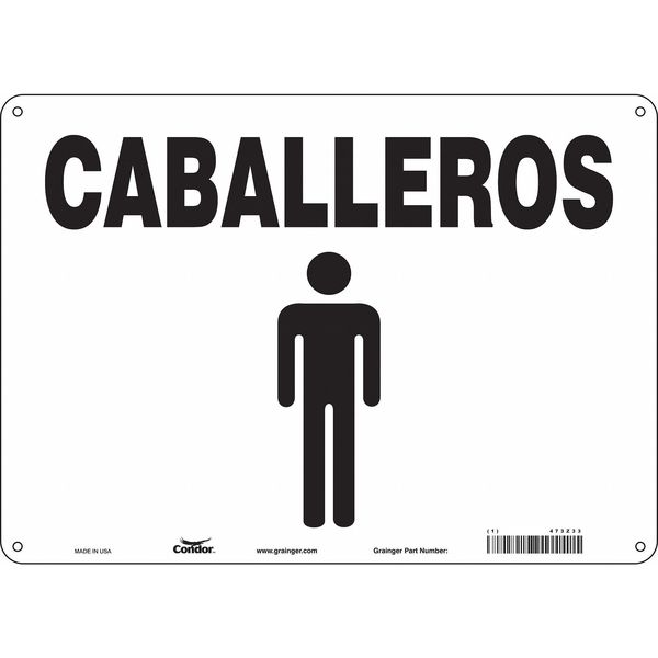 SKU G5574919Categories SafetyDescription Restroom Sign, Vertical Rectangle, Number of Printed Sides 1, Spanish, Sign Format Other Format, Sign Legend Caballeros, Sign Legend Background Color White, Sign Legend Style Symbol and TextgraingerSKU: 473Z33, mscSKU: , zoro_no: G5574919, mongo_id: 65bbea5222d7a989a99a8843